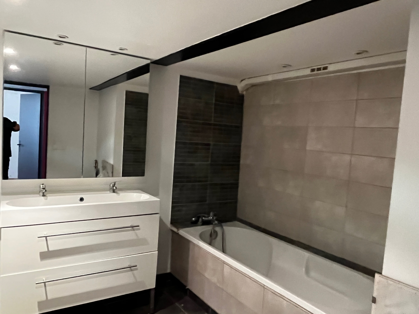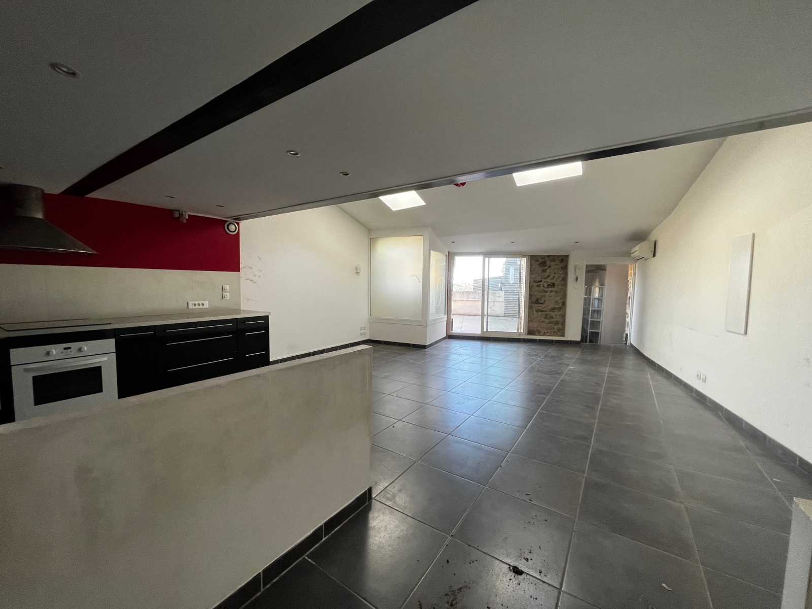 Grande entrée, pièce à vivre avec cuisine ouverte, 2 chambres avec salle de bains,