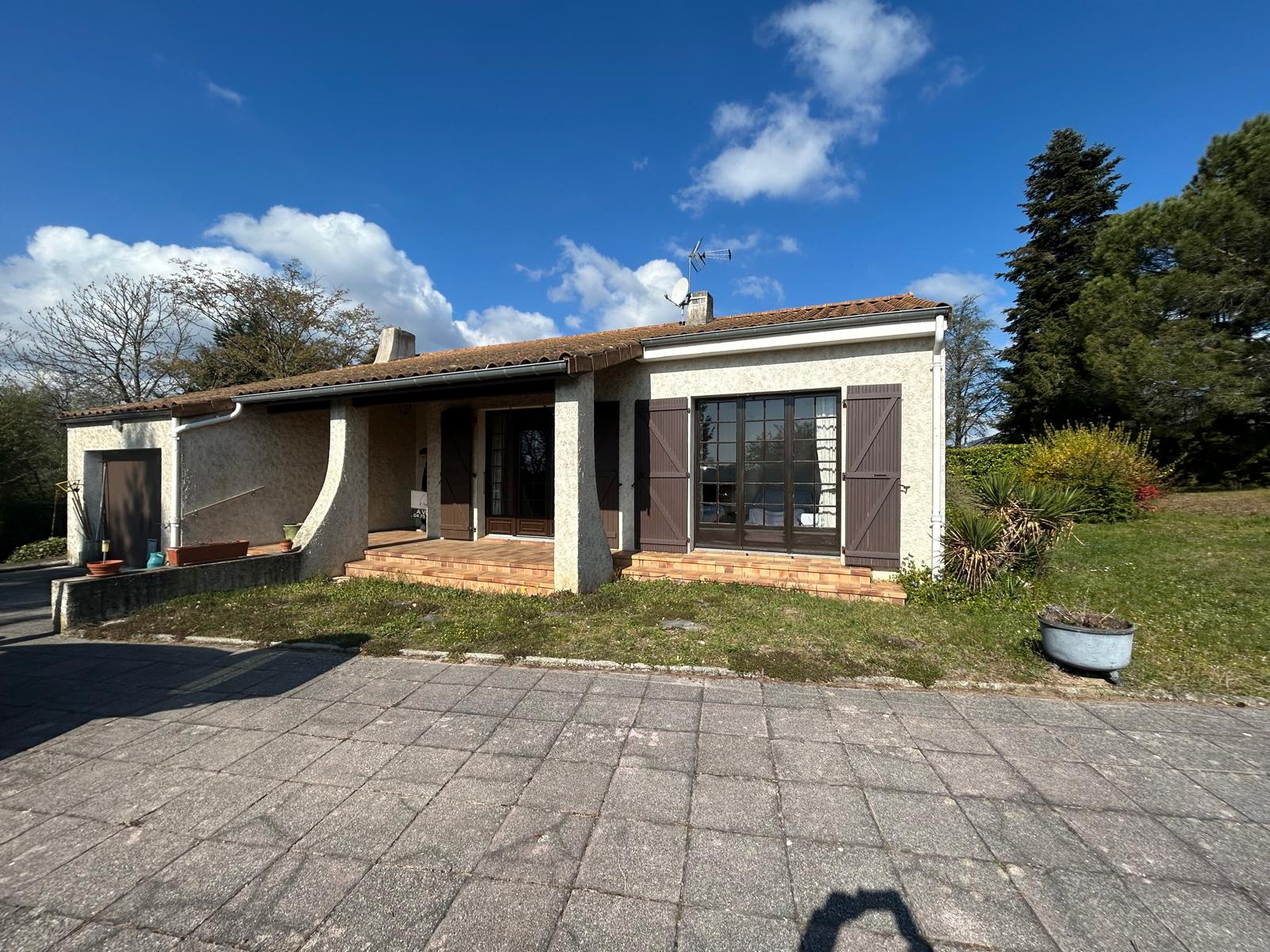 Située sur la commune de Saint-Clair, cette maison individuelle de plain-pied construite en 1976 bénéficie d’un magnifique terrain arboré de 1 961 m², agrémenté de beaux arbres d’ornement qui confèrent à la propriété un cadre naturel particulièrement agréable.