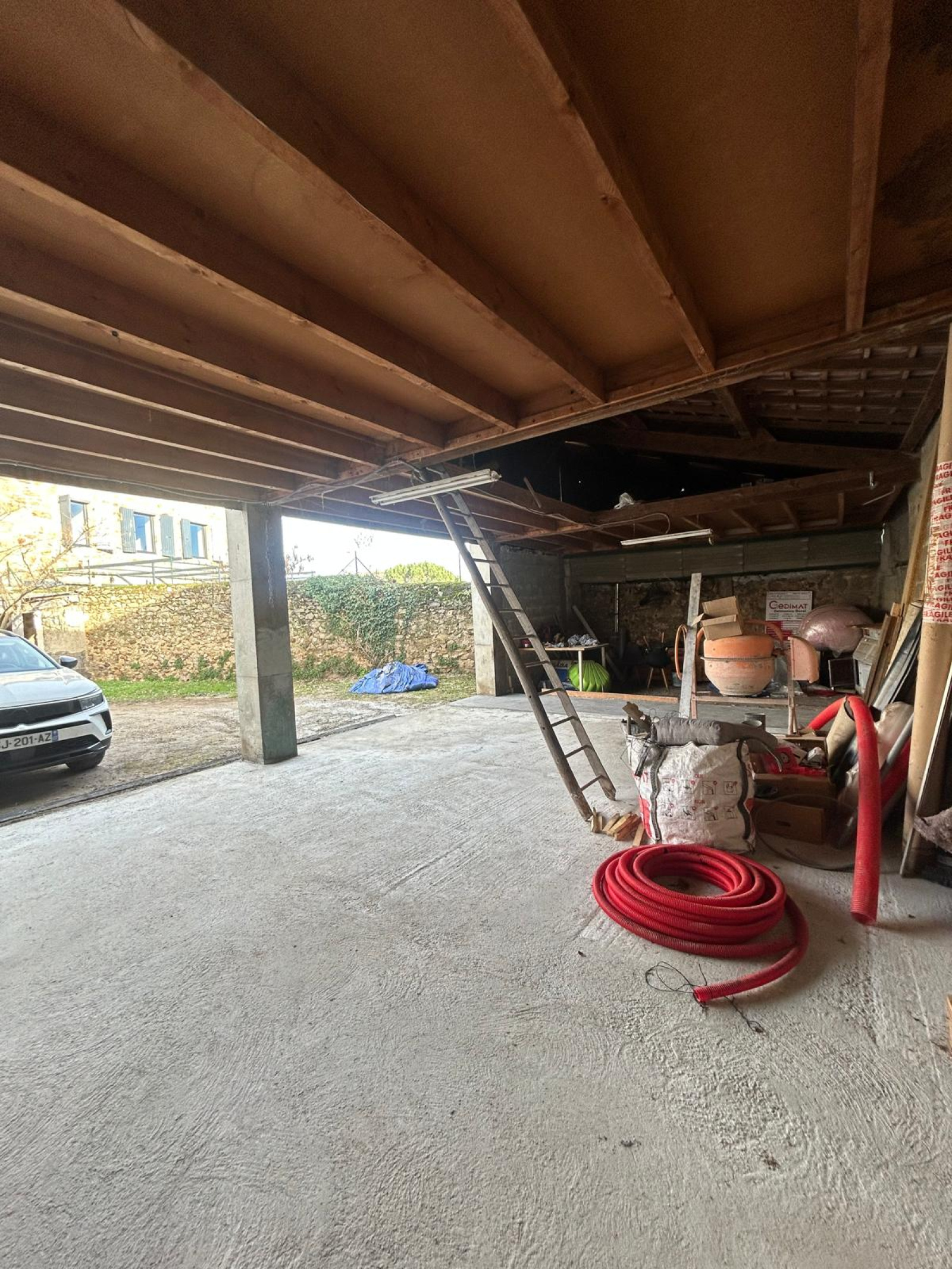 À l’extérieur, la grande cour intérieure, à l’abri des regards, offre un véritable potentiel : deux dépendances ainsi qu’un spacieux hangar donnent libre cours aux projets — atelier, stockage, extension de loisirs ou création d’un espace professionnel.