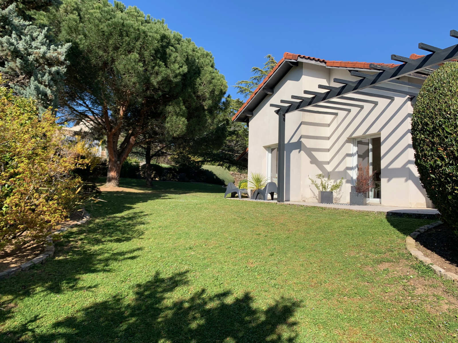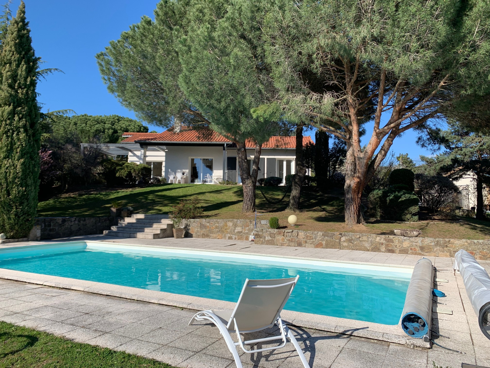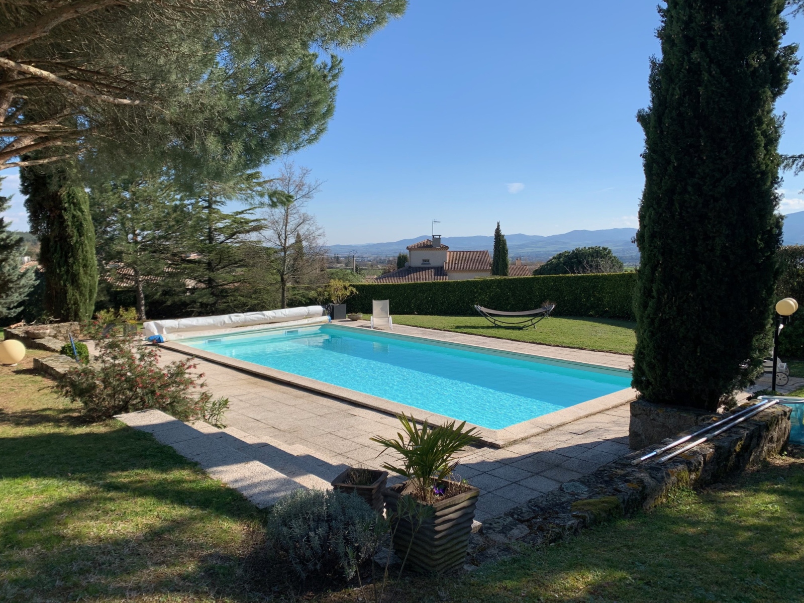 L'AGENCE HOURDOU-NITTO vous propose à la vente, une très belle propriété de plain-pied dans un quartier au calme sur un magnifique terrain paysagé de 2356m². Parfaitement entretenue, cette villa au style provençale vous séduira par son côté fonctionnel et pratique.La pièce de vie offre un espace de 60m² avec une cuisine équipée.Un cellier communique avec la cuisine. 3 chambres avec placards. Une salle de bain avec douche et baignoire. Chauffage électrique récent avec un complément de cheminée. Toutes les menuiseries sont en pvc doubles vitrages. A l'exterieur, une belle terrasse 60m² environ offrant un bel espace détente avec une vue dégagée sur les monts Ardéchois et une piscine entérrée viennent compléter le bien.La propriété se situe dans un environnement privilégié offrant un emplacement sans bruit et peu de vis à vis et une qualité de vie indéniable.